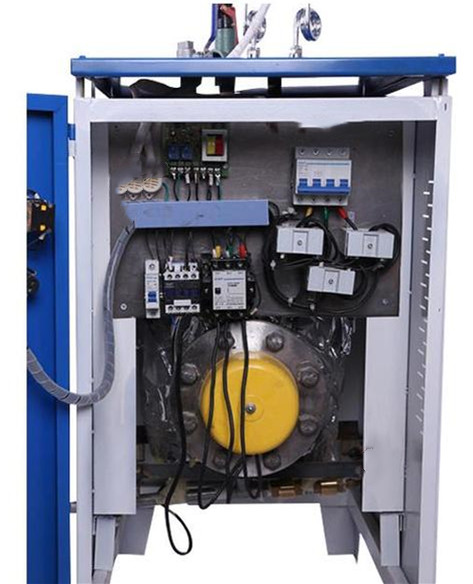 1、鍋爐的爐膽空間大,儲存的蒸汽多,適應(yīng)負(fù)荷能力強(qiáng)。設(shè)計合理的內(nèi)置汽水分離器裝置,滿足用戶需要蒸汽的要求。爐體開設(shè)人 孔、頭孔、手孔,便于對爐膽內(nèi)部進(jìn)行清理,維修、養(yǎng)護(hù)方便。2、鍋爐安全設(shè)有多級聯(lián)鎖保護(hù):壓力開關(guān)保護(hù)(高于設(shè)定壓力自動停機(jī)并報警)、低水位保護(hù)(鍋爐本體內(nèi)水位低于警戒水位,自動切斷電 源并報警)、安全閥保護(hù)(鍋爐壓力超過工作壓力,自動泄氣降壓),能夠讓鍋爐安全使用。3、有機(jī)組合的機(jī)電一體化外觀,精巧新穎、結(jié)構(gòu)緊湊、少占空間,方便運輸、安裝。性能特點:1.不用批年檢:根據(jù)《鍋爐安全技術(shù)監(jiān)察規(guī)程》規(guī)定,正常水位水容量小于30L的承壓蒸汽鍋爐不在特種設(shè)備檢查范圍之內(nèi),不需要監(jiān)檢,管理簡單而方便。2.出蒸汽快,節(jié)能環(huán)保:7分鐘出蒸汽,電加熱蒸汽發(fā)生器的3分鐘出蒸汽,是普通蒸汽鍋爐啟動速度的10倍。3.排煙溫度低:排煙溫度只有110度左右,熱量被充分吸收,普通蒸汽鍋爐排煙溫度250°-350°左右,比普通蒸汽鍋爐熱效率高,燃料熱量吸收充分。4.無危險:蒸汽發(fā)生器設(shè)計正常水位水容積僅為27L不會造成危險。-